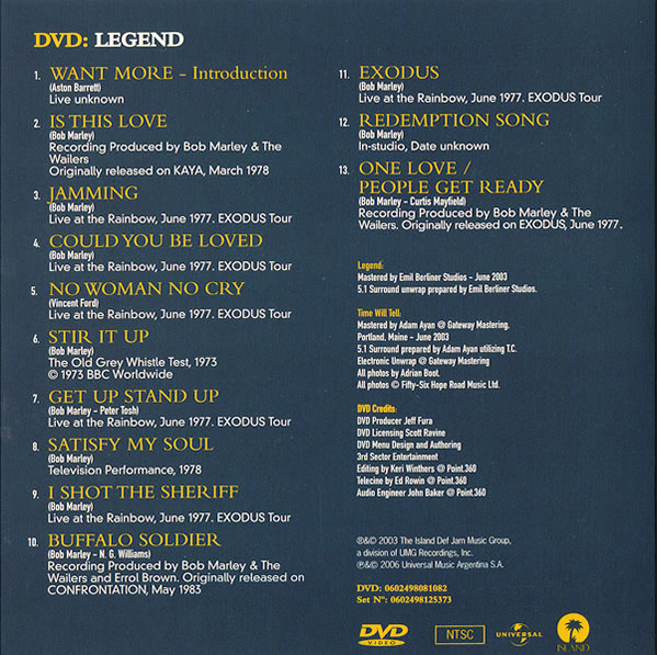 Live! (1975) ![]() 1. Trenchtown Rock – Live At the Lyceum, London 1975 2. Burnin’ and Lootin’ – Live At the Lyceum, London 1975 3. Them Belly Full (But We Hungry) – Live At the Lyceum, London 1975 4. Lively Up Yourself – Live At the Lyceum, London 1975 5. No Woman, No Cry – Live At the Lyceum, London/1975 6. I Shot the Sheriff – Live At the Lyceum, London/1975 7. Get Up, Stand Up – Live At the Lyceum, London/1975 |